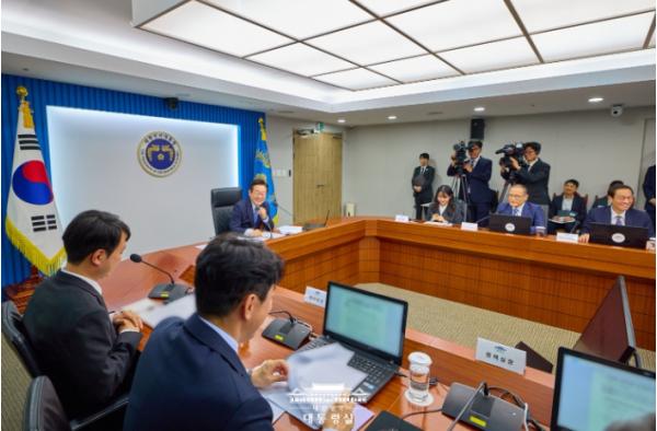 이 대통령은 "시작이 반이라고 했는데, 공통 공약을 시작으로 여야가 국민과 나라를 위해 더 많이 지혜를 모으고 더 크게 협력하기를 기대한다"며 "몰려오는 삼각 파도에 맞서 국가 역량을 더욱 더 하나로 모아야 된다"고 강조했다.