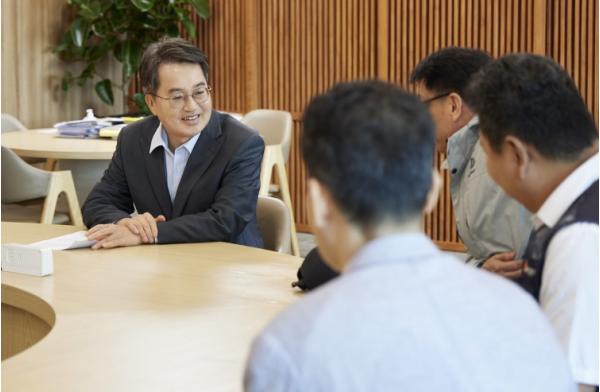 김동연 경기도지사는 중국 출장 직전인 22일 오전 10시 30분 집무실에서 극저신용대출 이용자 3명을 초청해 간담회를 했다.