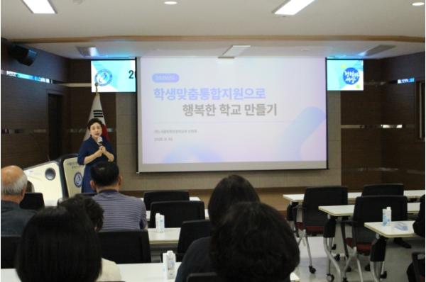 이번 연수는 교육 현장에서 개별 학생의 특성과 필요를 고려한 맞춤형 지원을 실현하기 위한 학생맞춤통합지원 체계의 구축 방향을 공유하고 학교 관리자들의 이해도와 실행력을 제고하기 위해 마련됐다.