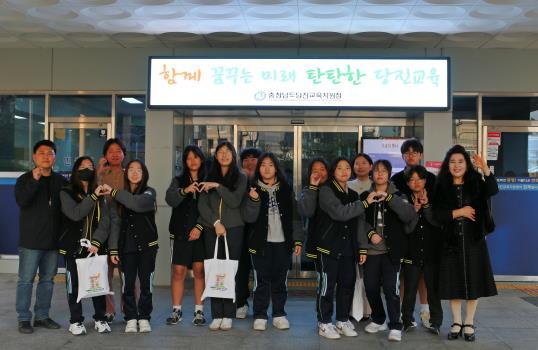 이번 당진교육지원청 견학에는 동아리 학생 12명과 3명의 지도교사가 함께 참여했으며, 교육지원청 주요 공간을 둘러보고 당진교육지원청 교육장님과의 만남을 통하여 공공기관의 역할과 교육 행정의 중요성을 배우는 시간을 가졌다.
