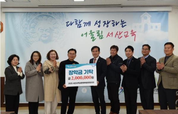 충청남도서산교육지원청은 2026년 1월 14일 본관 중회의실에서 2025 서산시학교운영위원장협의회로부터 장학금(이백만원)을 기탁받았다.