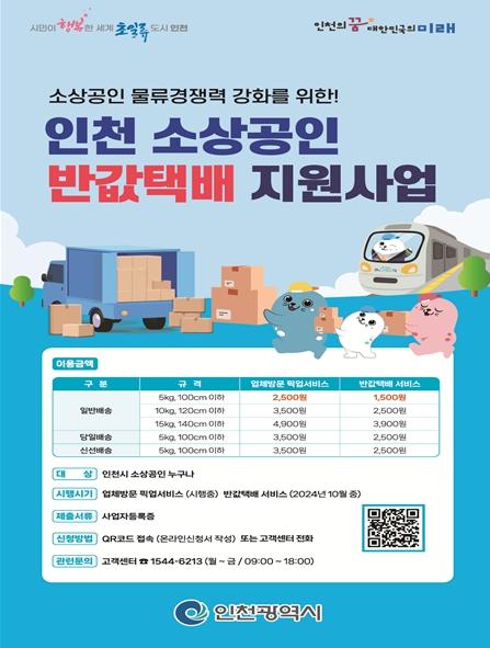 김을수 시 해양항공국장은“‘소상공인 반값택배 지원사업’은 친환경 지하철을 연계하여 기존의 소상공인 공동물류센터 실증사업의 효과를 37만 인천시 전체 소상공인에게 확대하는 것으로, 향후 인천시 소상공인의 연 매출 증가, 탄소 배출량 감축 등 긍정적 효과가 기대된다”며 “현재 소상공인 반값택배 지원사업 시행을 위한 지하철역 집화센터 설치 공사가 진행 중으로, 오는 10월 넷째 주부터 본격 시행될 예정”이라고 밝혔다.
