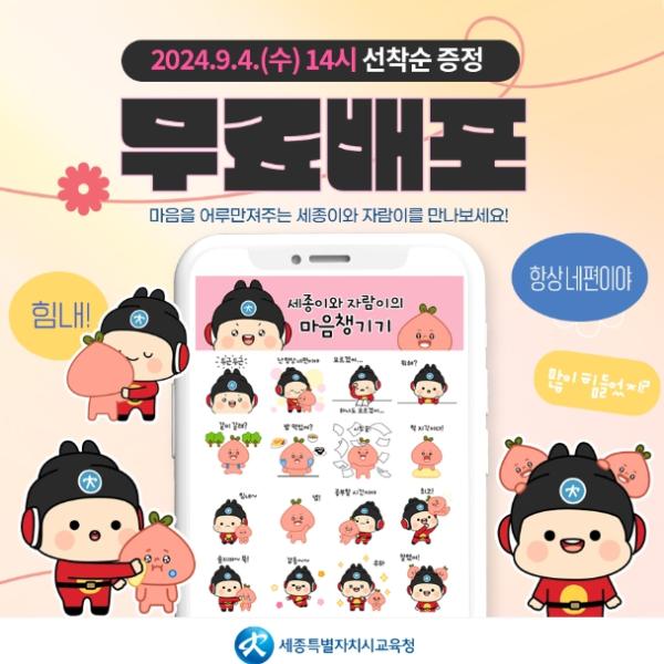 더불어 ▲마음 안심 버스 홍보(6교, 9.12. 부터 9.26, 세종광역정신건강복지센터) ▲마음건강 카카오톡 그림말(이모티콘) 홍보(세종시교육청 공식 카카오톡 플러스 채널 친구 추가/선착순 배포)를 진행한다.
