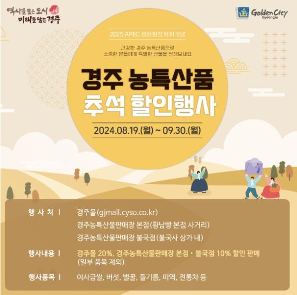 경주시가 민족 고유의 명절을 맞아 농축수산물 소비 촉진과 물가안정에 기여 하고자 특별 할인 이벤트를 선보인다.
