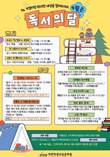 대전학생교육문화원은 9월 독서의 달을 맞아 본원 및 산성어린이도서관에서 학생과 지역주민을 대상으로 다양한 독서문화 행사를 개최한다고 밝혔다.