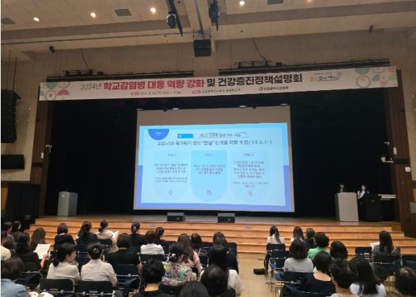 이번 연수와 설명회는 2학기 대비 감염병 예방 및 대응 지침 전달, 하반기 학생 건강증진 정책 및 주요 사업 공유, 학교 건강관리 법률 및 디지털 기반 보건교육에 대한 전문가 강연 등으로 진행했다.