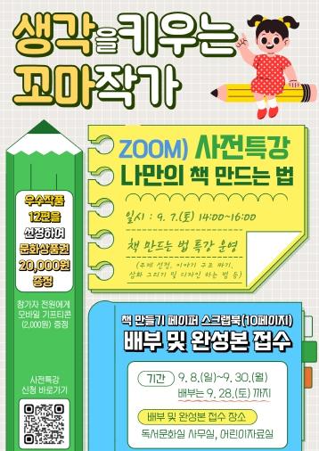 또한, ▲어린이들이 꼬마 작가가 되어 자신의 동화책을 만드는 ‘생각을 키우는 꼬마 작가’, ▲추석 관련 그림책을 읽고 가족이 함께 송편을 만드면서 가족간 사랑을 느껴보는 ‘추석 전날 밤’, ▲가족 구성원이 모두 참여하여 같은 책을 읽고, 서로의 생각을 이해하는 시간을 가지는 ▲‘책 읽는 가족, 꿈꾸는 미래’, ▲독서치유 도서를 대출하면 선물을 주는 ‘도전! 내 멋대로 뽑기 독서치유’ 등 풍성한 행사를 운영한다.