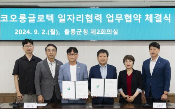 울릉군은 9월2일 울릉군청에서 코오롱글로텍(주)(대표이사 방민수)과 일자리 협력 업무협약(MOU)을 체결했다.