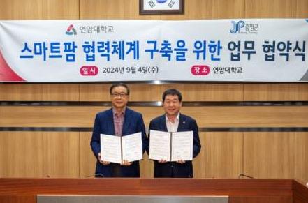 연암대 본부에서 진행된 협약식에는 이재영 군수, 육근열 연암대학교 총장을 비롯한 관계자가 참석한 가운데 스마트팜 교육 사업, 행정 지원 등 스마트팜 분야 상생발전과 기반 구축을 위해 적극 협력하기로 했다.