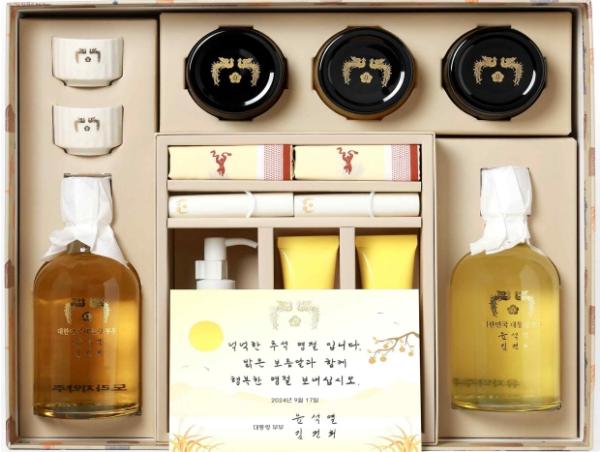 윤석열 대통령은 '24년 추석을 맞아 국가와 사회발전을 위해 헌신한 각계 원로, 제복 영웅·유가족, 사회적 배려 계층 및 체코 원전 수주 유공자 등 각계 인사들에게 전통주와 화장품 세트를 전달할 계획이다.