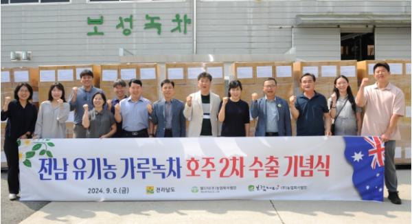 전남도농업기술원은 6일 보성 보림제다에서 차 수출 관계자와 생산자 등이 참석한 가운데 가공 전문업체인 월드티(주)농업회사법인을 통해 전남산 가루녹차 6톤을 호주에 수출했다고 밝혔다.
