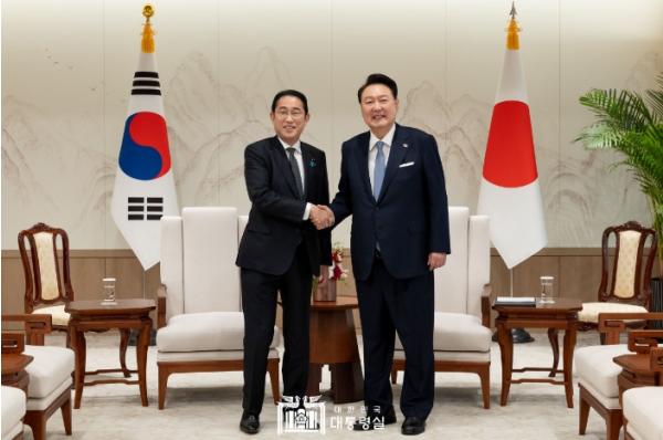 윤석열 대통령은 9월 6일 방한한 '기시다 후미오(岸田文雄)' 일본 총리와 15:35-17:15 약 100분 간 한일 정상회담을 가졌다.