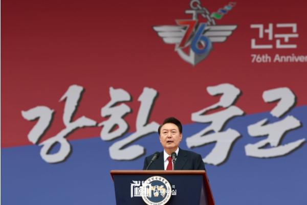이어서, 대통령은 북한의 끊임없는 위협과 도발에 단호하게 맞서, 국군이 국가와 국민을 수호하는 막중한 임무를 수행하고 있다며, 우리 국군의 뜨거운 애국심과 충성심이 오늘날 우리가 누리는 자유와 번영의 든든한 토대가 된 것임을 강조했다.