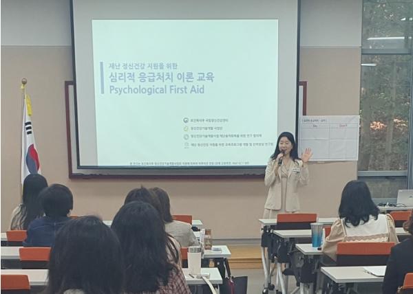 이를 위해 충남교육청은 10월 8일(화) 아산 교원연수원에서 재난응급심리지원단 36명을 대상으로 심리적 응급처치 역량 강화 연수를 진행했다. 이번 연수는 국가트라우마센터 필수 교육으로, 국립공주병원 트라우마센터 백현주 강사의 강의와 실습을 통해 재난 상황 시 학교 현장에서 적용할 수 있는 심리적 응급처치 및 대응 방법에 대한 심도 있는 교육이 이루어졌다.