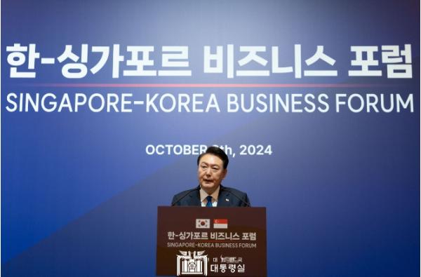 윤석열 대통령은 10월 8일 오후 싱가포르의 시내 호텔에서 열린 ?한-싱가포르 비즈니스 포럼?에 참석했다. 대통령은 어제 필리핀에 이어 오늘 싱가포르에서도 비즈니스 포럼에 참석해 경제인과의 소통 행보를 이어갔다.