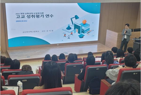 연수는 ▲고교 성취평가제의 이해 ▲분할점수 개념과 나이스 분할점수 활용의 실제 ▲최소 성취 수준 보장 지도 등으로 구성됐으며, 참여 교사들은 이를 각 교과별 학생 평가 계획에 반영해 공정한 평가 체제를 마련할 계획이다.