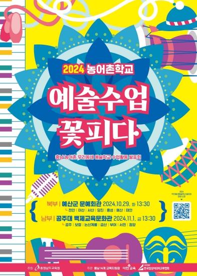 충남교육청은 10월 29일(북부권)과 11월 1일(남부권) 두 차례에 걸쳐 각각 예산군 문예회관과 공주대 백제교육문화관에서 2024 충남 농어촌 우리동네 예술학교 수업활동 발표회를 개최한다고 밝혔다.