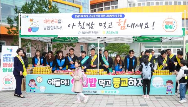 충남교육청과 NH농협은 지난 9월 20일 체결한 쌀 소비촉진을 위한 아침밥 먹기 상생협력 협약을 바탕으로 도내 학교를 대상으로 한 아침밥 먹기 공동 캠페인을 실시한다.