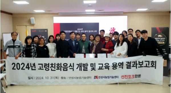 안성시농업기술센터는 저작 활동이 어려워 영양 섭취가 어려운 노인을 위하여 ㈜선진과 함께 돼지고기 뒷다리살을 이용한 음식 4종을 개발했다.